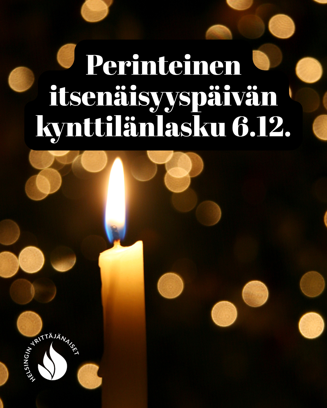 Tervetuloa Helsingin Yrittäjänaisten pitkään perinteeseen, yhteiseen kynttilänlaskuun itsenäisyyspäivänä 6.12.2025 klo 12.00. Laskemme kynttilät tuntemattoman sotilaan haudalle Hietaniemen hautausmaalla ja kunnioitamme samalla Suomen 108 itsenäistä vuotta sekä kaikkia heitä, jotka ovat aikanaan mahdollistaneet vapaan kotimaamme. 💛 Muistathan tuoda mukanasi oman kynttilän ja pukeutua lämpimästi. Kynttilänlaskun jälkeen siirrymme yhdessä Kahvila Lähteelle nauttimaan kahvit. Kokoontuminen: Hietaniemen hautausmaan pääportti ...