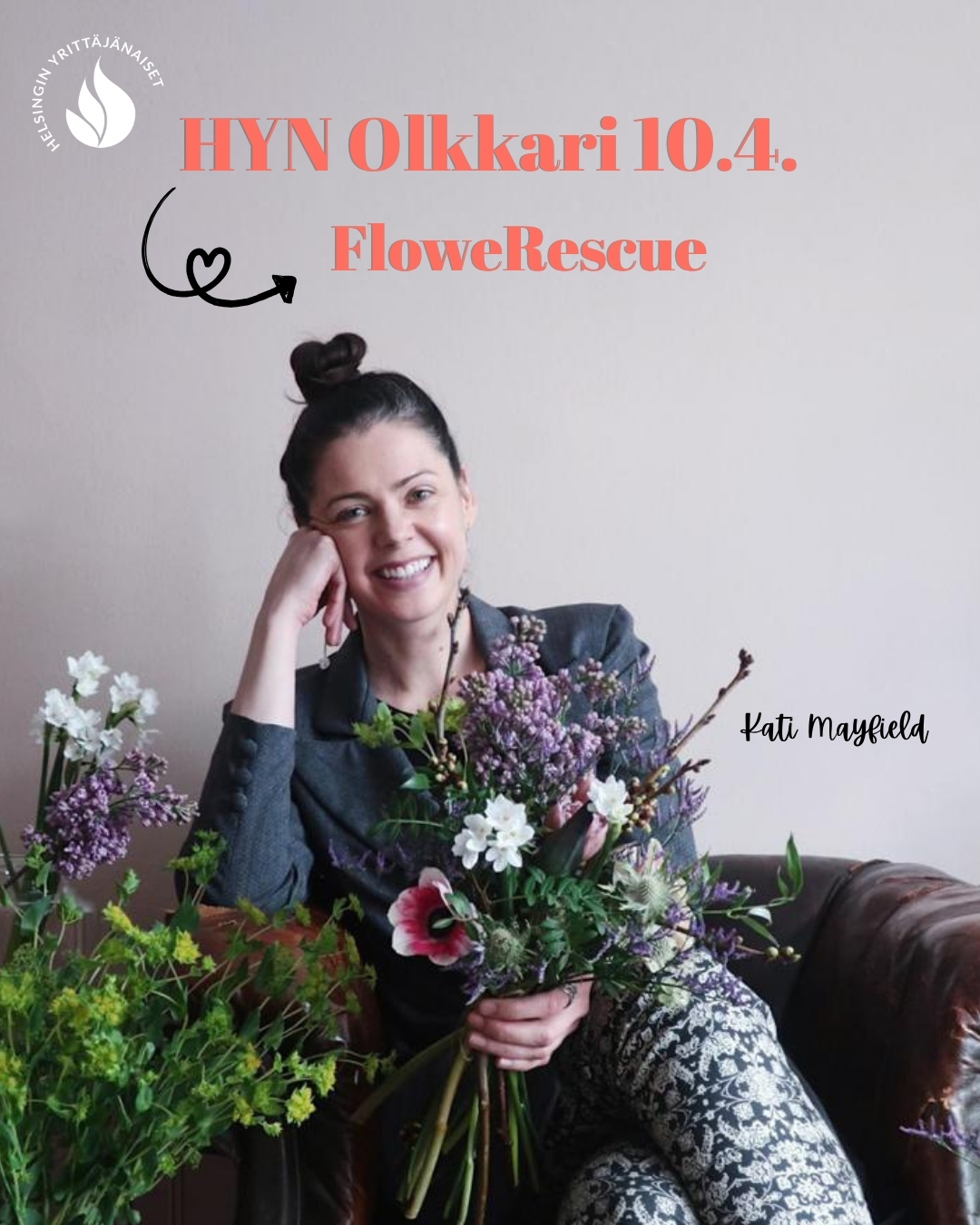 Huhtikuun Olkarissa pääsemme nauttimaan kukista Helsinkiläisen FloweRescue ry:n perustajan Kati Mayfieldin johdolla ✨ Illan aikana sinulla on mahdollisuus tehdä ylijäämä kukista kimppuja, jotka lahjoitetaan vanhainkoteihin 💐